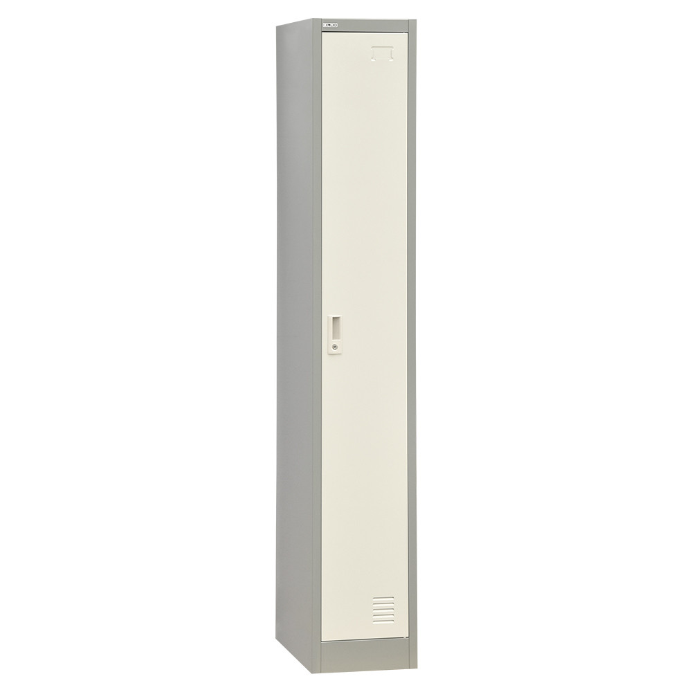 A szekrény masszív acéllemez testtel és ajtóval készül, felülete műanyag porszórással színezett, színe világosszürke (RAL 7035). Az ajtó 110 fokban nyitható, jobboldali zsanérokkal, továbbá szellőzőráccsal és névtáblatartóval ellátott. A belső kialakítás része egy fix felső polc és egy ruhaakasztó rúd. A zárás kulcsos zárral történik, 2 darab kulccsal. A terméket lapraszerelve szállítjuk. A csomagolási méret 1880 x 480 x 75 mm, a termék súlya 19,5 kg.