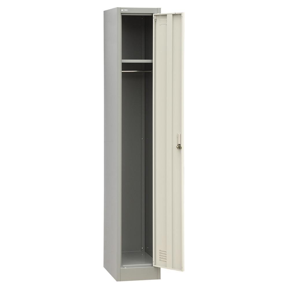 A Blax TopCab 300 egyajtós öltözőszekrény tartós, könnyen tisztítható és praktikus tárolási megoldás öltözőkbe és szociális helyiségekbe. A kulcsos zár, a felső polc, a ruhaakasztó rúd, valamint a szellőzőráccsal ellátott hosszúajtó kényelmes és biztonságos használatot biztosít a mindennapokba