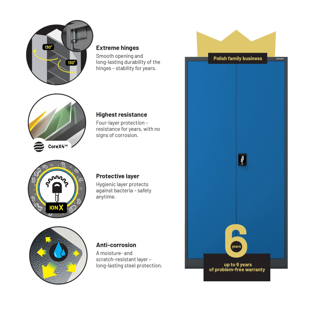 így a szekrény megfelel irodai, orvosi, ipari vagy oktatási környezetben egyaránt.