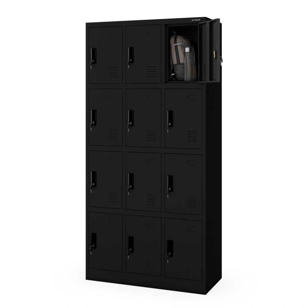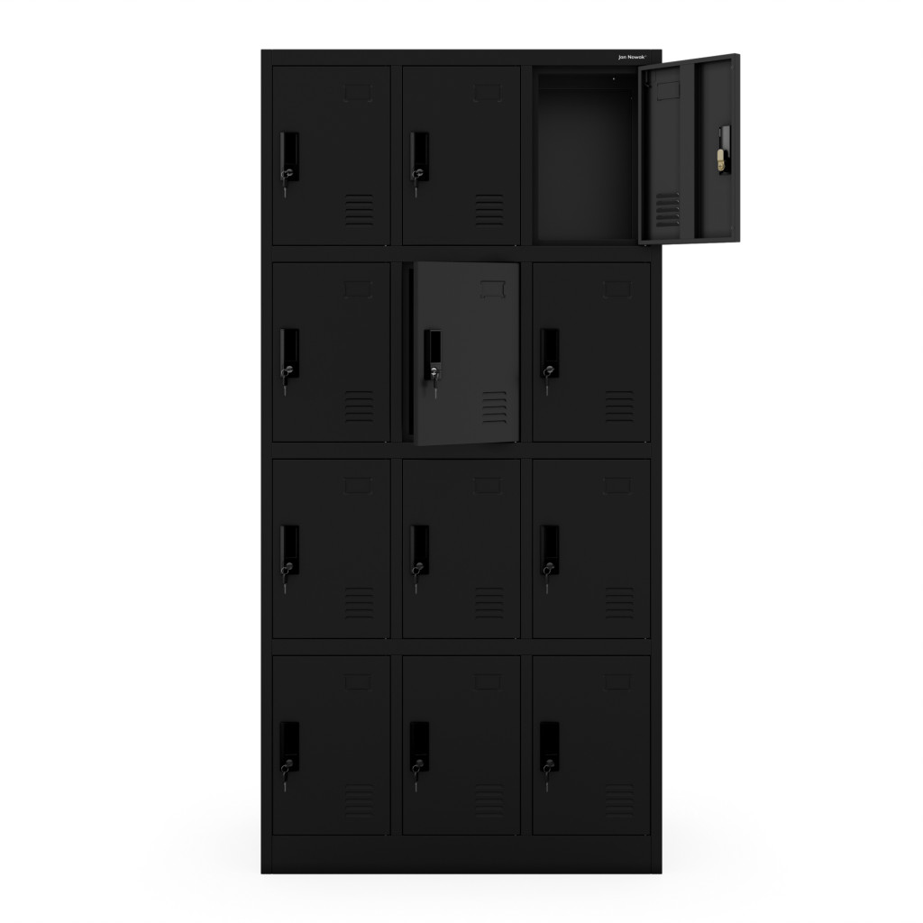 A JAN NOWAK MARCIN 3B4A öltözőszekrény kifejezetten azoknak készült, akik értékelik a funkcionalitást és a stílust. A fekete színű (RAL9005) kivitel elegáns és időtálló megjelenést kölcsönöz, amely bármilyen környezetbe illeszkedik. A három különálló, zárható fülkével rendelkező szekrény biztosítja, hogy minden felhasználó személyes tárgyait biztonságban tudhassa.
