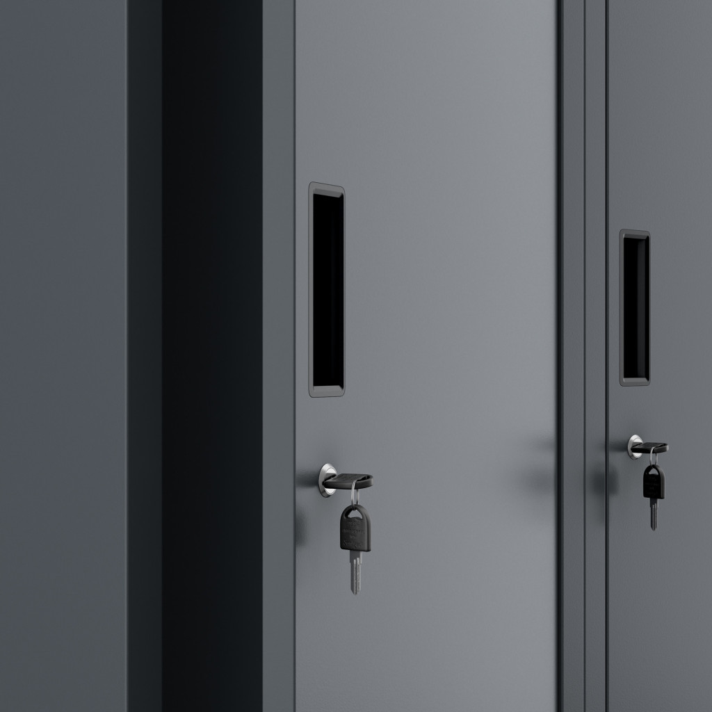 - Zárható ajtók: Biztosítják a személyes tárgyak védelmét.