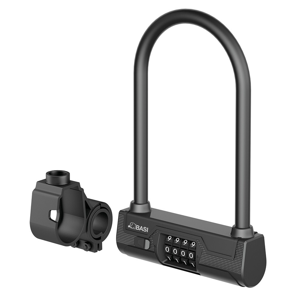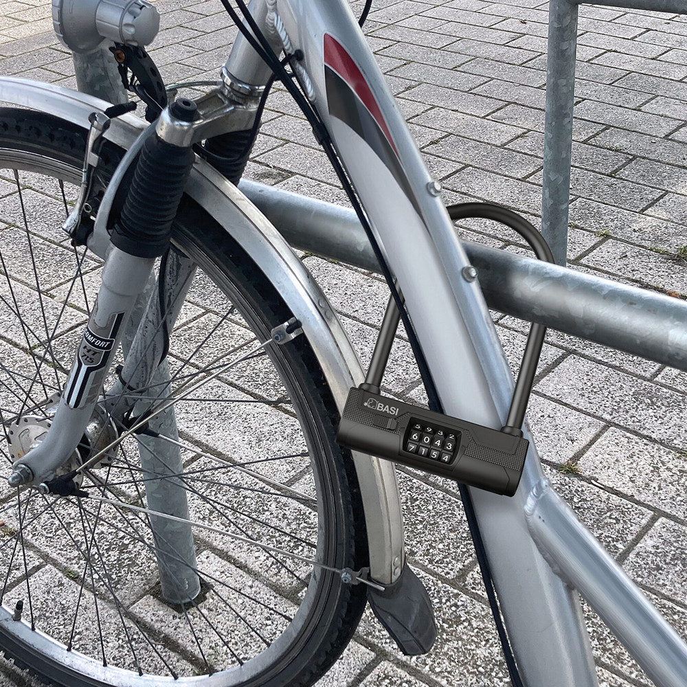 •extra erős számkombinációs biciklizár•14 mm átmérőjű edzett acél kengyel•4 tárcsás számzár•átkódolható számkombináció•10.000 kódvariáció•időjárásálló műanyag bevonat•praktikus műanyag tartó•fekete színben kapható