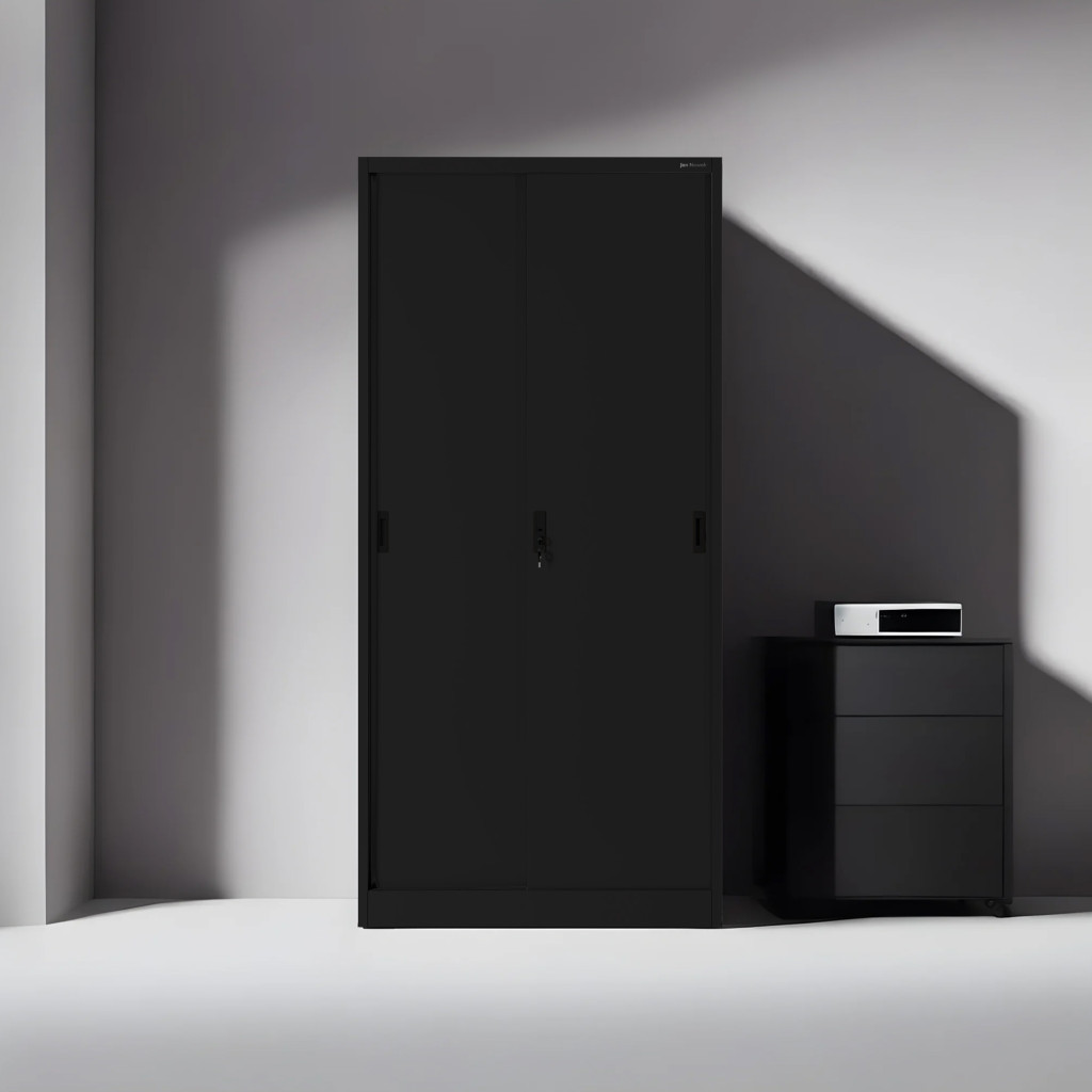 A KUBA irodai fém szekrény tökéletes választás a modern munkahelyek számára, ahol a funkcionalitás mellett a megjelenés is fontos. A fekete szín eleganciát sugároz, ami bármely iroda dekorációjához illeszkedik.