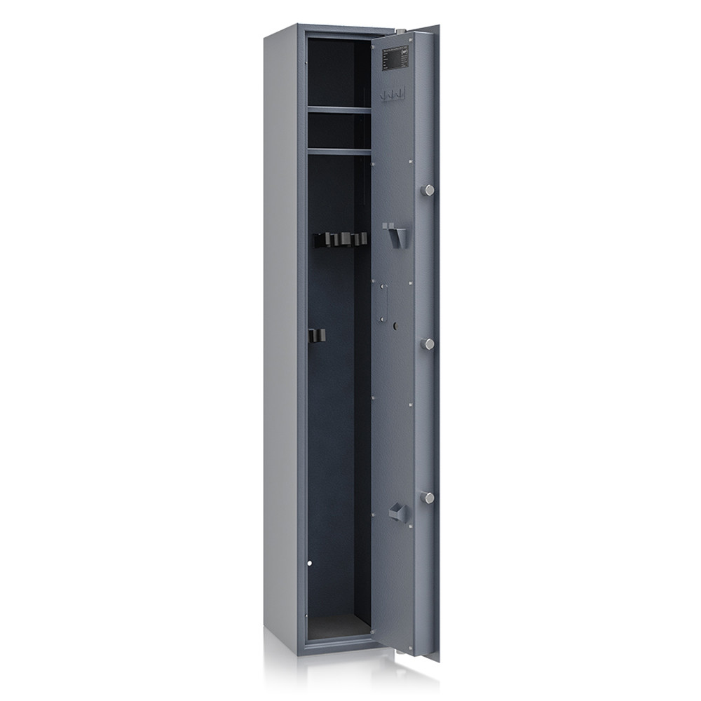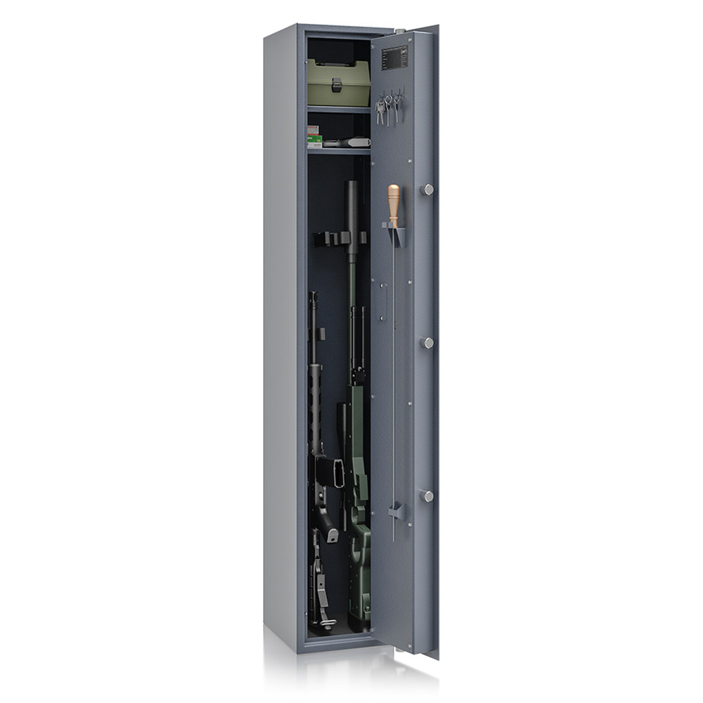 A fegyverszekrény belsejében 4 db fegyver tárolására alkalmas szivacs fegyvertartó található, amely megóvja a fegyvereket a karcolásoktól. Két darab kivehető és állítható magasságú polc biztosítja, hogy a kiegészítők, tisztítóeszközök és iratok is rendezetten elférjenek. Az ajtón tisztítóvessző tartó és kulcsakasztó is helyet kapott a maximális helykihasználás érdekében.