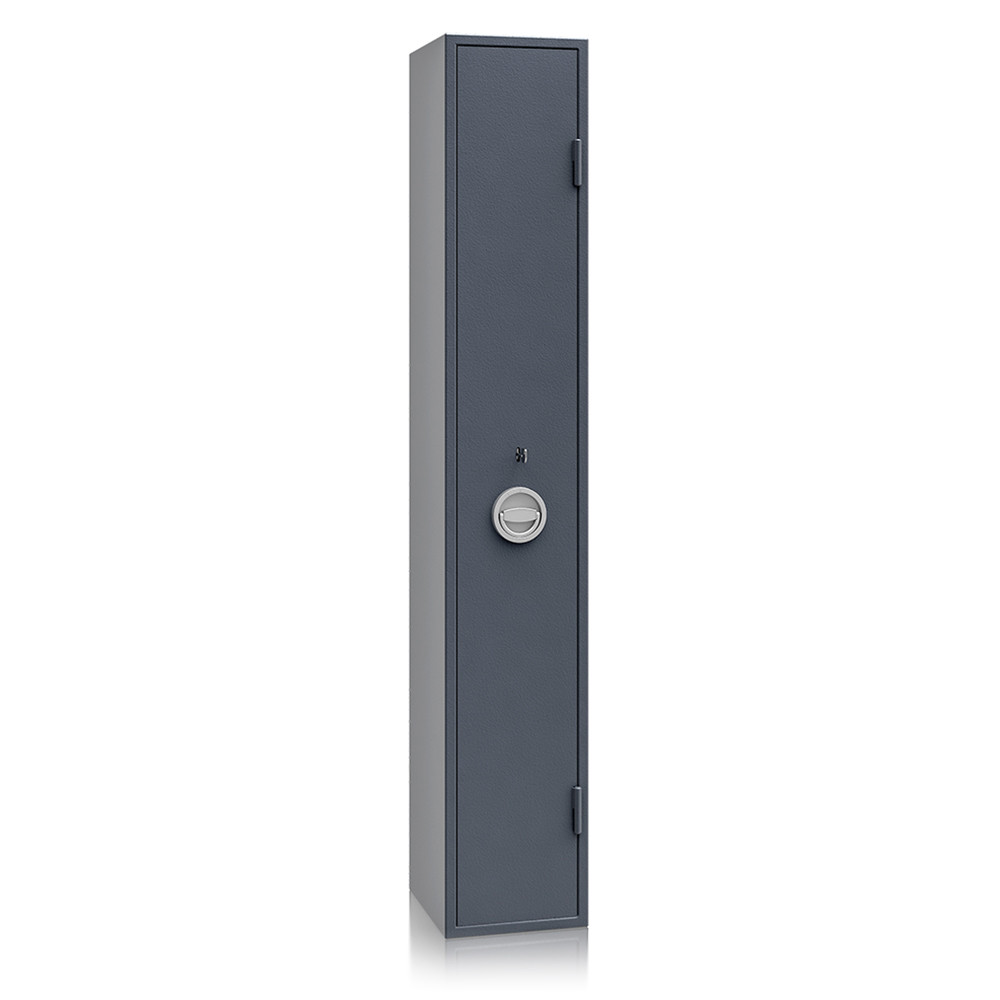 A fegyverszekrény VdS I-es kulcsos zárral szerelt, 2 darab 65 mm-es kulccsal.