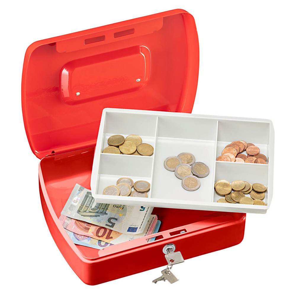 • minőségi pénzkazetta• erős acéllemez test és fedél• masszív belső zsanérozás• elegánsan ívelt forma• süllyesztett fém fogantyú• kivehető műanyag aprópénztartó• alatta hely a bankjegyeknek• minőségi 5 csapos cilinderzár• kettő darab kulccsal• többféle méretben és színben• 2127 típus: aprópénz bedobó nyílás a fedélen (gyerek persely)• aprópénztartó betétek:• 2127 típusnál: nincs rekesz• 2167 típusnál: 2 rekesz (Tray 14)• 2207 típusnál: 5 rekesz (Tray 7)• 2257 típusnál: 5 rekesz (Tray 8)• 2307 típusnál: 5 rekesz (Tray 17)• betétek külön is rendelhetőek• nyerskulcs típusa: 65L