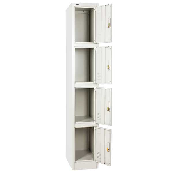• négyajtós zárható értékmegőrző fémszekrény• masszív acéllemez test és ajtó• műanyag porszórással színezett• egyszerűen tisztítható, karcálló felület• 110 fokban nyitható ajtók• jobboldali zsanérok• szellőzőrács és névtáblatartó• kulcsos fémszekrény zár (kettő darab kulccsal)• világosszürke (RAL 7035) színben, lapraszerelve áruljuk• csomagolási méret: 1880x480x80mm