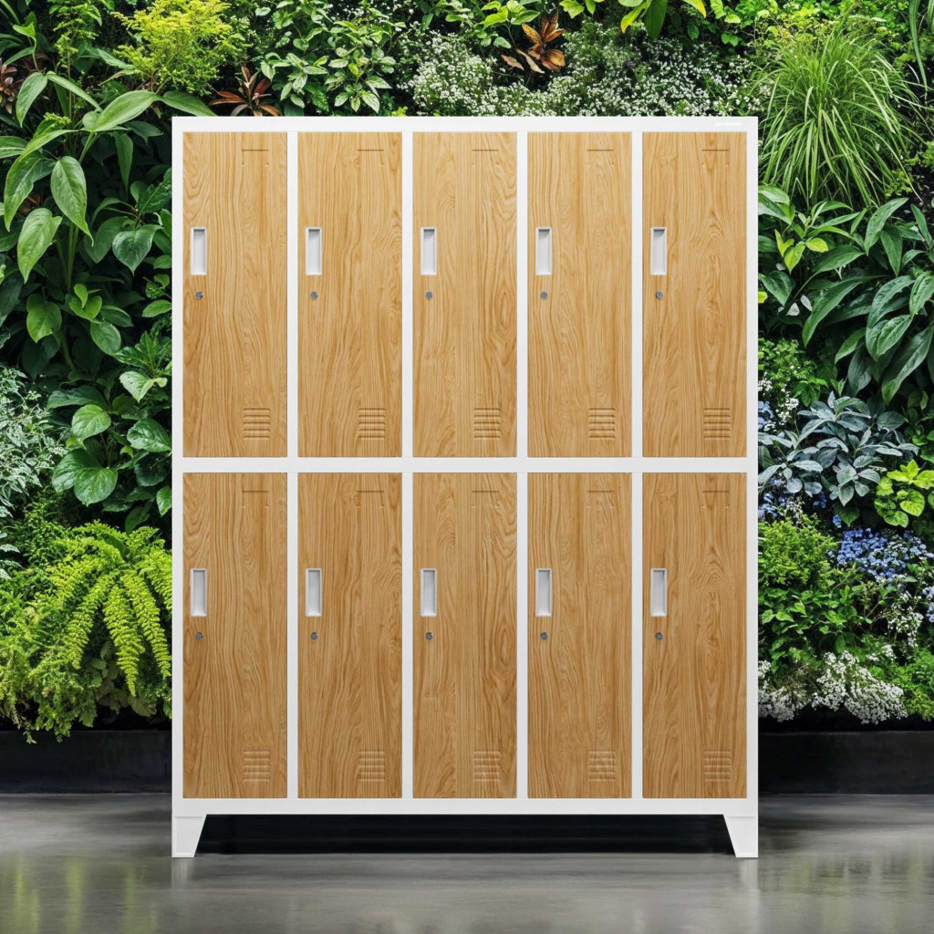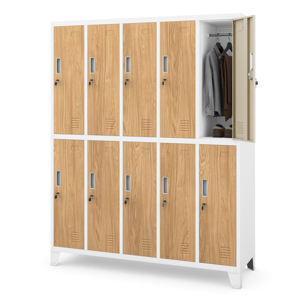 A szekrény tíz különálló zárható rekesszel rendelkezik amelyek lehetővé teszik a személyes ruházat és értéktárgyak elkülönített tárolását Minden rekesz kulccsal zárható kialakítású és ruhakasztó sínnel van ellátva ami segít megőrizni a ruhák rendezettségét és csökkenti a gyűrődést A rekeszek két szinten helyezkednek el így különböző testmagasságú felhasználók számára is kényelmes hozzáférést biztosítanak
