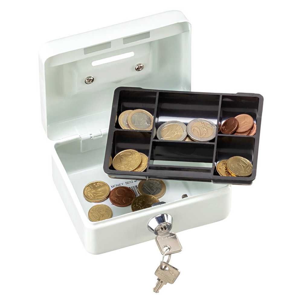 • acéllemez pénzkazetta• rejtett belső zsanérozás• négyszögletes forma lekerekített élekkel• süllyesztett krómozott fém fogantyú• kivehető műanyag aprópénztartó• alatta hely a bankjegyeknek• krómozott lamellás zár• kettő darab kulccsal• többféle méretben és színben forgalmazzuk• 5012 modellnél aprópénz bedobó nyílás található a fedélen (gyerek persely)