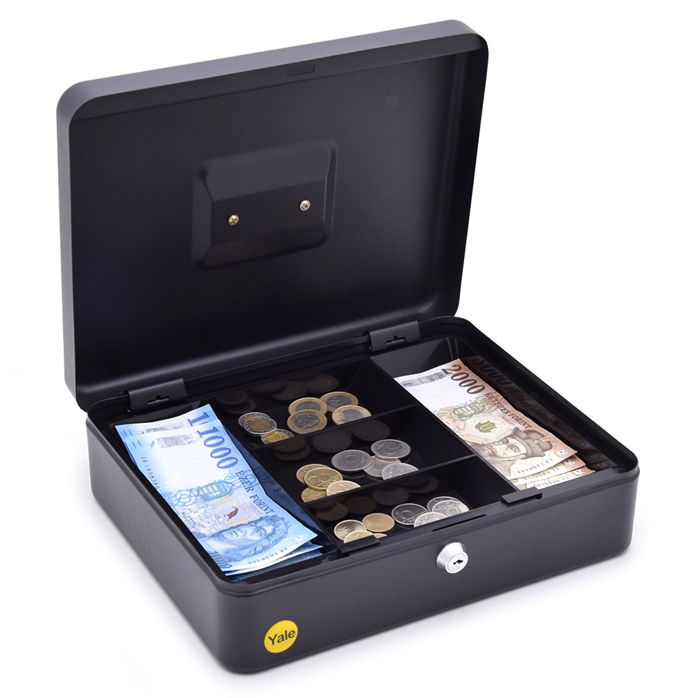 A Yale Cash Box pénzkazetta tökéletes választás azok számára, akik kompakt és hordozható megoldást keresnek a készpénz biztonságos tárolására. Az elegáns és letisztult fekete színű kivitelével nemcsak funkcionalitást, hanem modern megjelenést is biztosít.