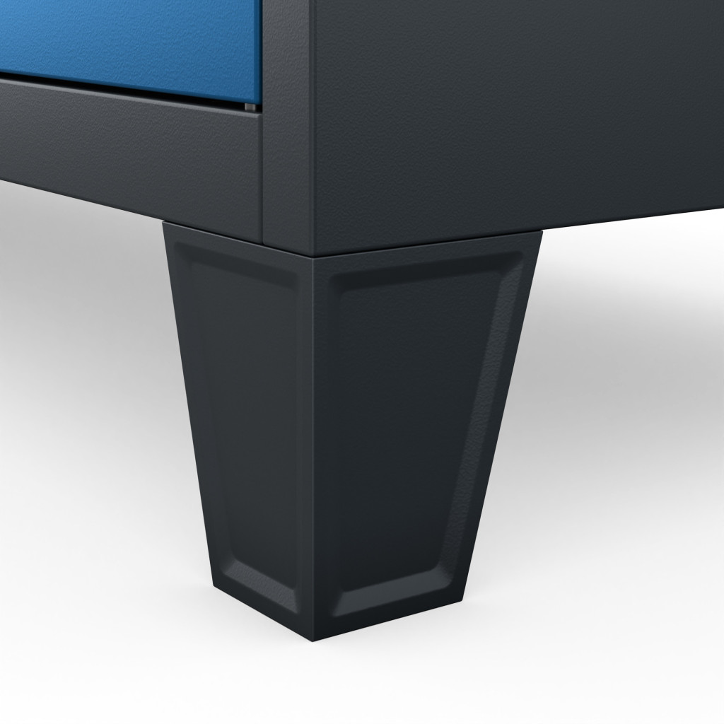A szekrény masszív fémszerkezettel készül, amelyet mindennapi, intenzív használatra terveztek. A 0,6 mm vastag acéllemezből gyártott test porszórt bevonatot kapott, ami nemcsak esztétikus megjelenést ad, hanem növeli az ellenállóságot a sérülésekkel és a korrózióval szemben is. Ennek köszönhetően a ROBERT öltözőszekrény hosszú távon is megbízható és tartós választás marad.