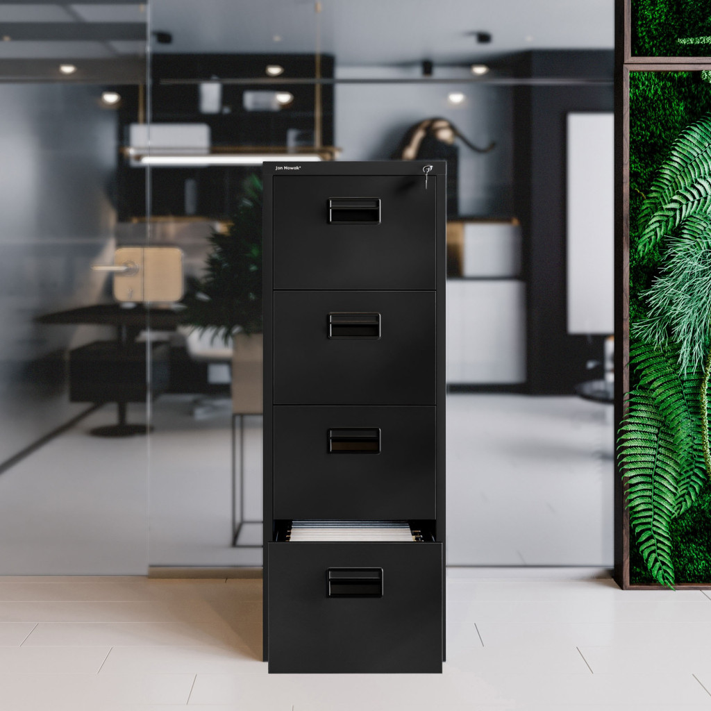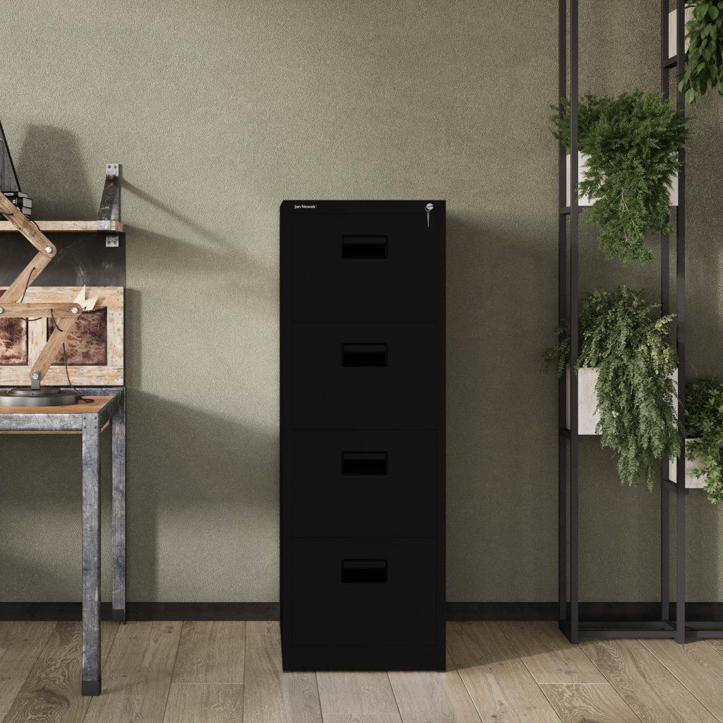 A SARA V004 kartotékszekrény nem csak esztétikailag vonzó, hanem rendkívül funkcionális is. Négy tágas fiókkal rendelkezik, amelyek könnyed mozgást biztosítanak, így egyszerűen hozzáférhet minden fontos dokumentumhoz. Az acél anyagnak köszönhetően a szekrény rendkívül stabil és tartós, védelmet nyújtva az iratoknak a mindennapi használat során. A zárható fiókok biztonságos tárolást garantálnak, így védve értékeit az illetéktelen hozzáféréstől. A fekete szín eleganciát és professzionális megjelenést biztosít, ami bármely irodában vagy otthonban jól mutat.