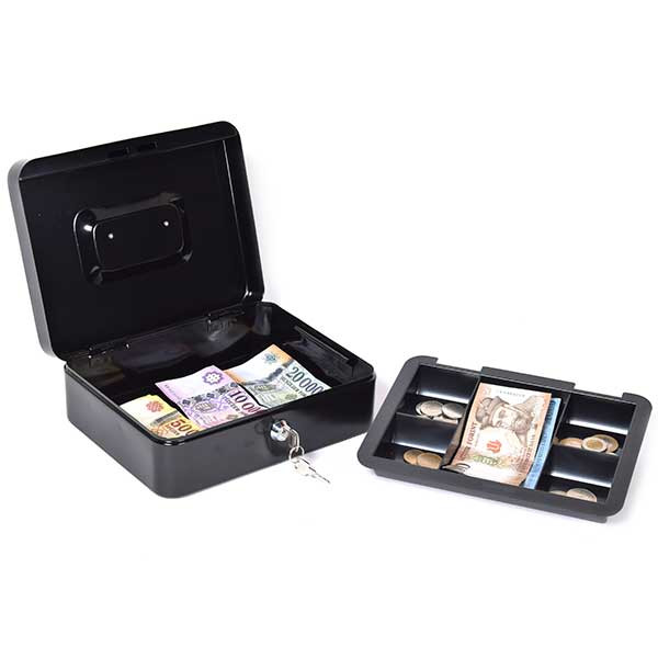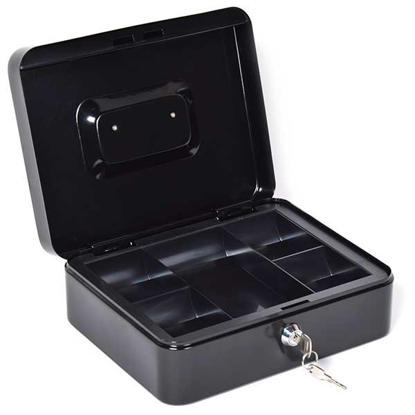 Extra Tulajdonságok: Az acéllemez pénzkazetták rejtett belső zsanérozással rendelkeznek, négyszögletes formájuk lekerekített élekkel büszkélkedik, és süllyesztett fém fogantyújuk könnyű szállítást tesz lehetővé. A pénzkazettákban megtalálható a kivehető műanyag aprópénztartó, valamint alatta hely van a bankjegyeknek. A krómozott lamellás zárak megbízható védelmet nyújtanak, és kettő darab kulccsal szállítjuk őket.