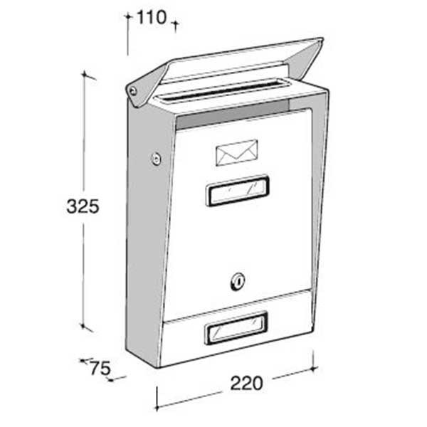 • kapun, kerítésen kívülre szerelhető postaláda• anyaga horganyzott acéllemez • műanyag porszórással színezett• időjárásálló lakkozással• klasszikus megjelenésű kültéri postaláda• esővédett bedobónyílás felhajtható tetővel• felfelé nyíló ajtó• betekintő nyílás és névtartó• krómozott postaláda zár• kettő darab kulccsal• többféle színben rendelhető