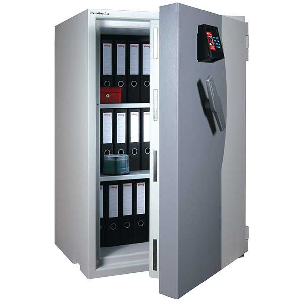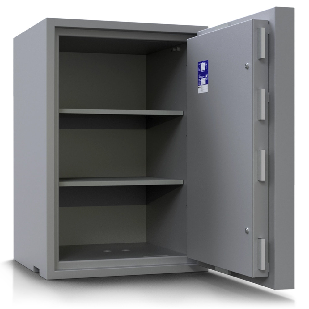• 80mm vastag acél test, speciálisan megerősített beton töltettel (maximális védelem lángvágás és flexelés ellen)• 160mm vastag acél ajtó (ebből 70mm extra erős beton)• 60mm-re kiemelkedő elegáns alumínium kilincs• 180 fokos ajtónyitás, erős külső zsanérokkal• rögzítő fülek a zsanéroldalon (zsanérlevágás ellen)• háromirányú zárás acél hevederekkel (16x120mm)• ipari gyémánt bevonat az összes hevederen• rozsdamentes belső szerkezet és kilincsmű (werk)• mangán acéllappal védett zárszerkezet (fúrás ellen)• nagyméretű, üveglapos passzív zár (ütésre, felfúrásra, átvágásra és zárbeütésre is aktiválódik)• üveg berobbanása után a páncélszekrény nem nyitható• hátsó és oldalsó kábelátvezető furat (riasztókábelnek)• felfogató lap rezgésérzékelőnek (testen és az ajtón is)• 22mm-es rögzítő furat lefelé (műanyag kupakkal)• kivehető és állítható magasságú polc(ok)• világosszürke (RAL 7035) színben (kétszínű ajtóval)• többféle zárkombinációval és kiegészítővel is rendelhető• prémium kategóriájú páncélszekrény igényeseknek