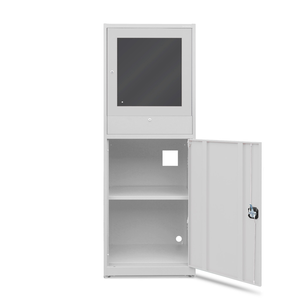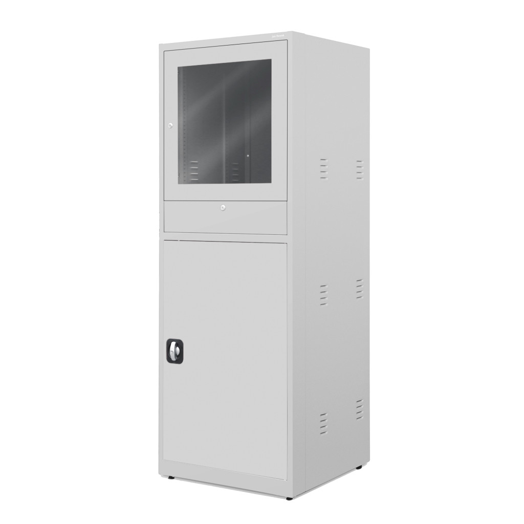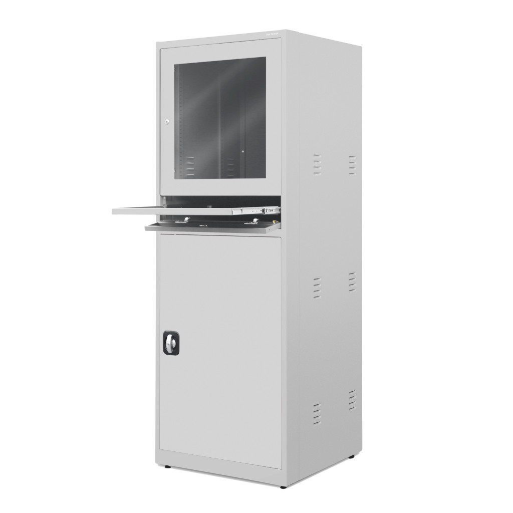 A JAN NOWAK STEVE ipari számítógépszekrény ideális választás minden olyan környezetbe, ahol fontos a számítógép biztonságos elhelyezése ipari körülmények között. A masszív kialakítású szekrény lehetővé teszi a teljes informatikai munkaállomás zárt, jól szervezett és hozzáférés szerint elkülönített használatát. A három külön zárható zóna biztosítja, hogy az egyes szintekhez csak az arra jogosult személyek férhessenek hozzá.