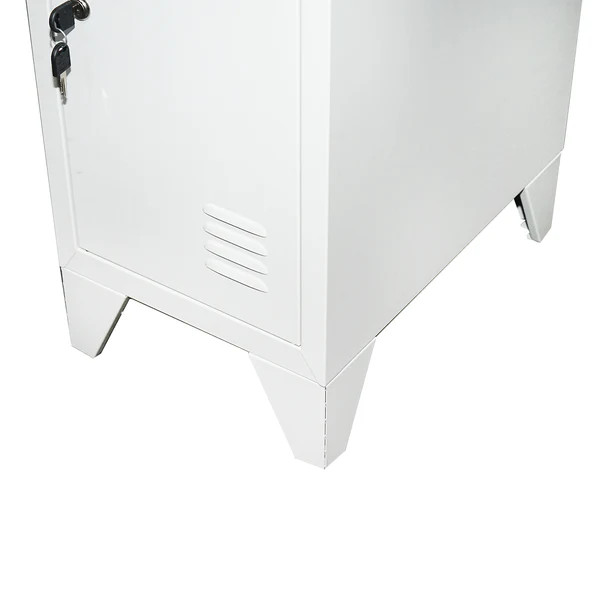 A szekrény 1700 x 300 x 450 mm méretű (HxSzxM), amely helytakarékos elhelyezést tesz lehetővé. A 3 különálló biztonsági ajtó kulccsal zárható, így a személyes tárgyak biztonságosan tárolhatók. Az ajtók címketartóval felszereltek, amely segíti a rekeszek azonosítását. A szellőzőnyílásokkal ellátott ajtók megfelelő légáramlást biztosítanak, csökkentve a párásodás és a kellemetlen szagok kialakulását.