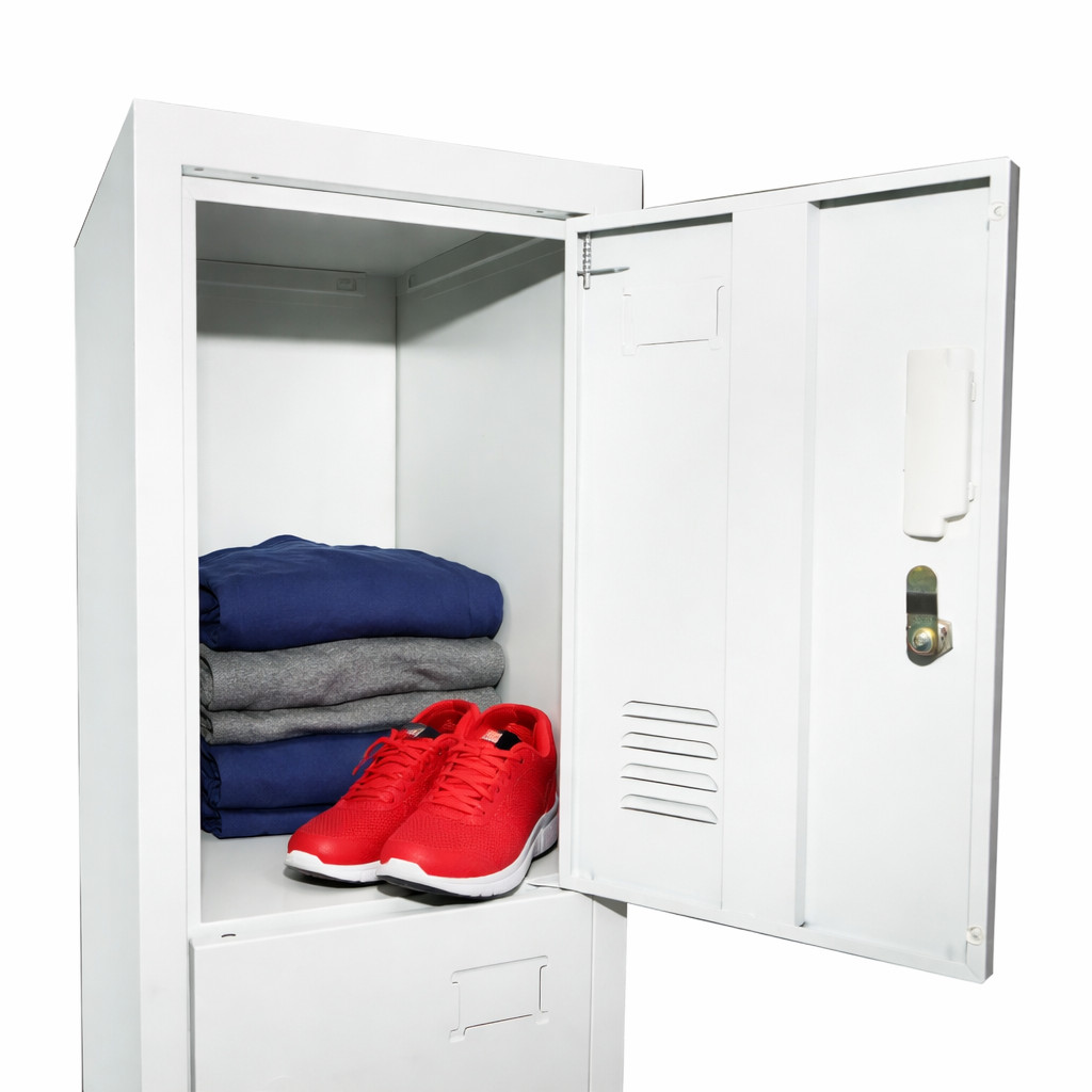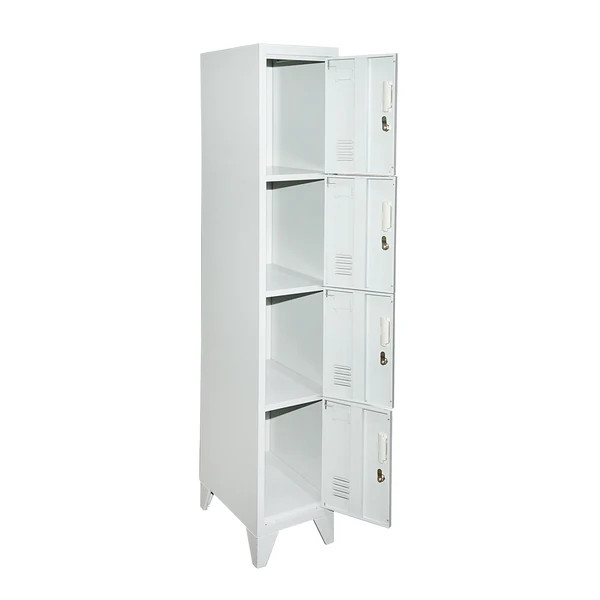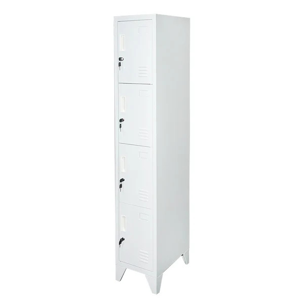 4 rekeszes fémszekrény kompakt, mégis biztonságos tárolási megoldást kínál öltözőkbe, munkahelyi környezetbe, iskolákba vagy szociális helyiségekbe. A keskeny kialakításnak köszönhetően kis alapterületen is elhelyezhető, miközben négy külön zárható rekeszt biztosít a személyes tárgyak elkülönített tárolására. A praktikus kialakítás lehetővé teszi több felhasználó egyidejű használatát, így ideális megoldás nagyobb forgalmú helyiségekbe.