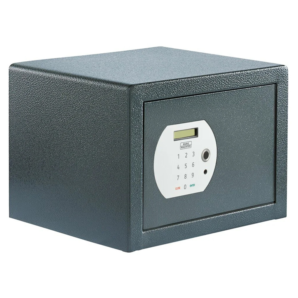 •megbízható egyfalú bútorszéf•elektromos zárral, ujjlenyomatolvasóval•2 mm-es egyfalú acél test•48 mm vastag ajtó, 6 mm-es acél borítással•90 fokos ajtónyitás jobboldali zsanérokkal•egyirányú zárás 22 mm-es acél hevederekkel•motoros működtetésű elektronikus zár•fólia billentyűzet, ikonos LED kijelzővel•3-6 számjegy közötti felhasználói kód és•8 számjegyű vésznyitó kód programozása•maximum 5 ujjlenyomat betanítása lehetséges•mechanikus vésznyitási lehetőség tűkulccsal•3 téves kódbevitel után 5 perces büntetőidő•zár 4 db Mignon LR 6 AA 1,5V elemmel működik•rögzítő furat lefelé és hátrafelé•vésznyitó nyerskulcs típusa: Rohling 53X