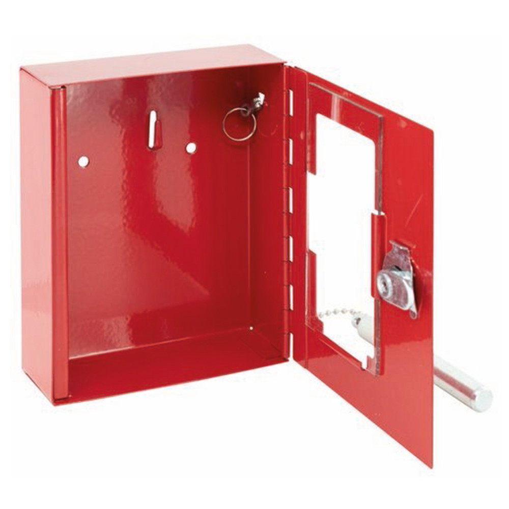 A kulcsszekrény masszív fémházzal készül, kulcsos zárral és egy belső akasztóval a vészkulcs biztonságos elhelyezéséhez.